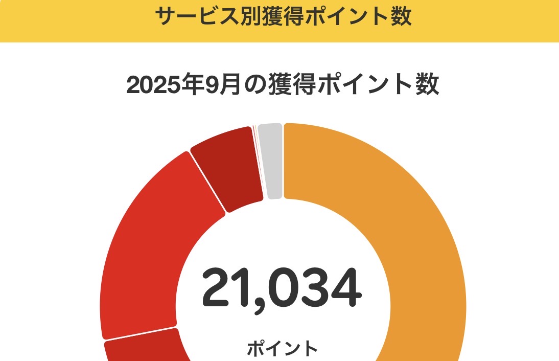 ・2025年09月は、「21,034ポイント」の合計獲得となり、前月比でややUPのポイント獲得となりました!