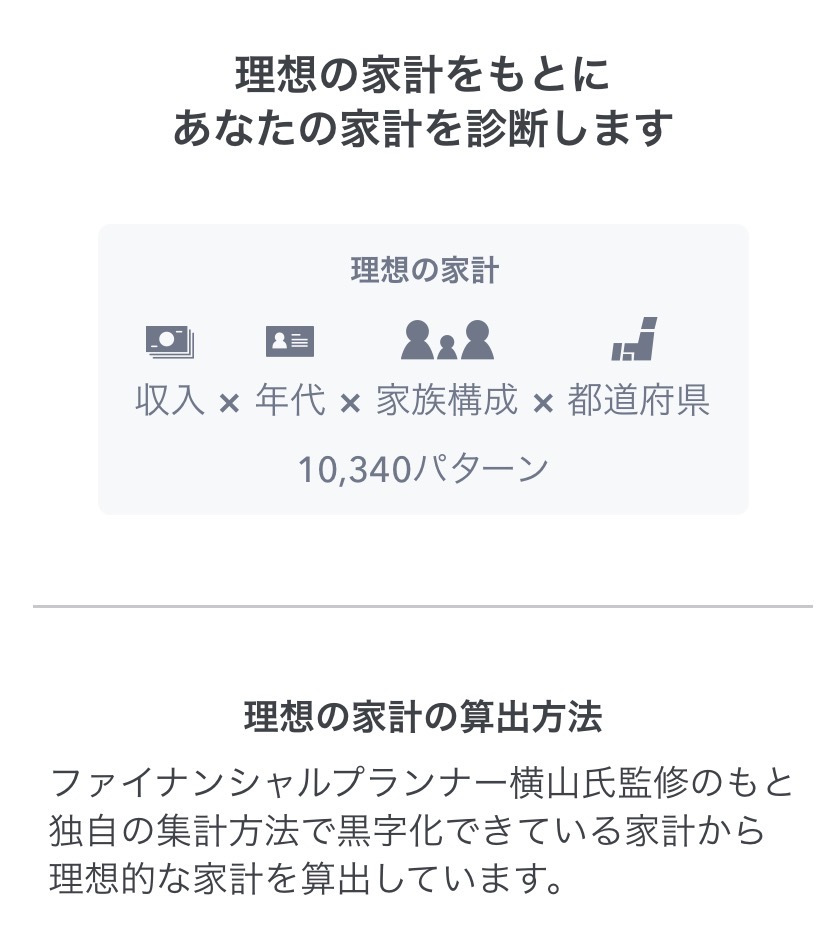 ・(「MFfor住信SBIネット銀行アプリ」では、理想の家計を元に、10,340パターンから、「理想の家計診断」が無料で受けられますので、参考になります。)