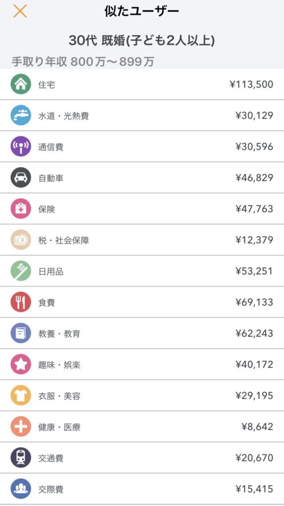 ・自分の家計と各項目を比較、検討できますので、オススメです。