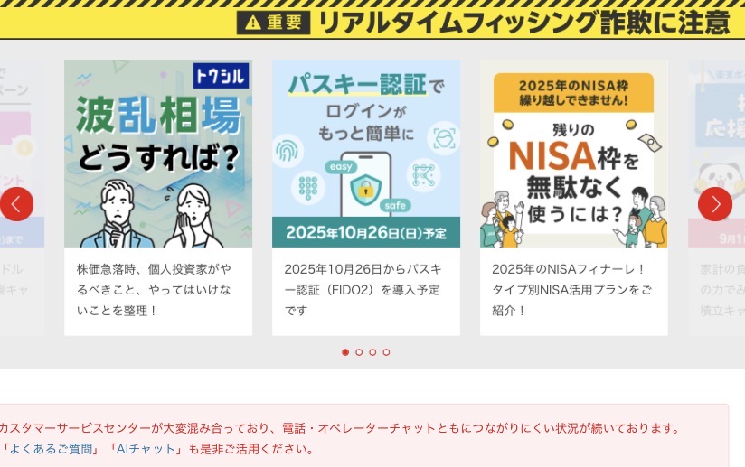 正規サイトでは、ご注文や各種変更の際に取引暗証番号が必要となることはありますが、ログイン直後に取引暗証番号を求めることはない。