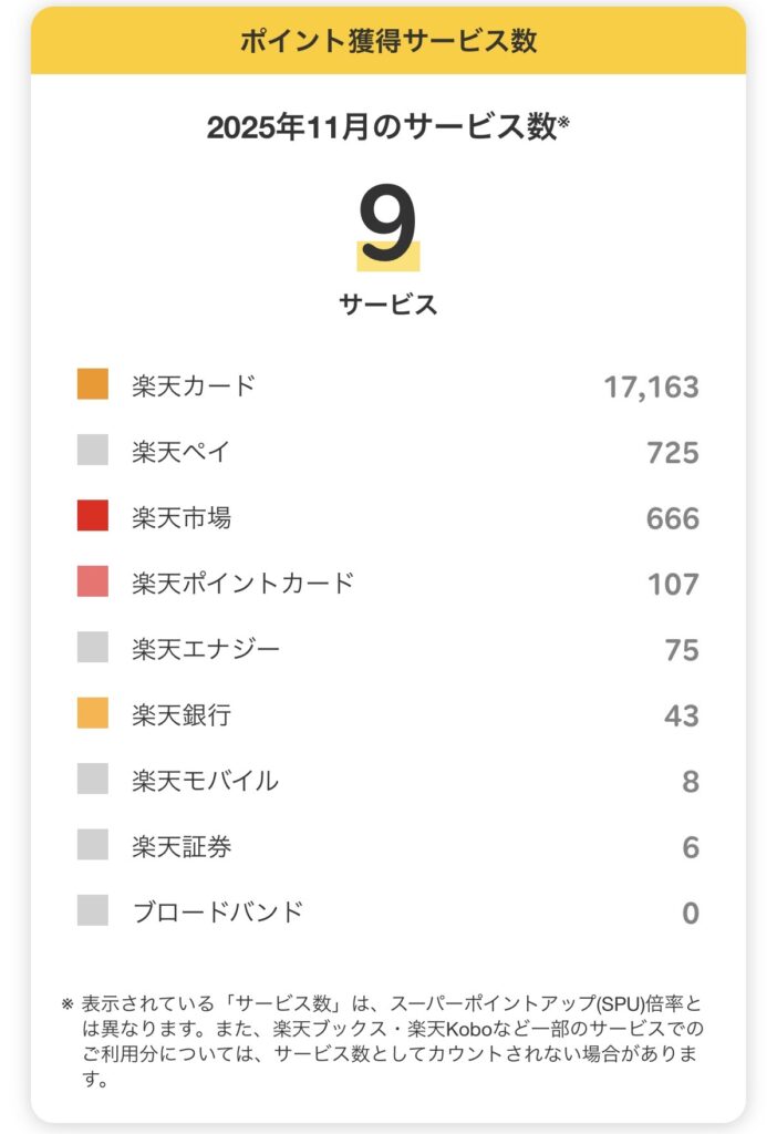 ・主にカウントされた獲得サービス数は、全9サービスです。(通常ポイントのみ。)