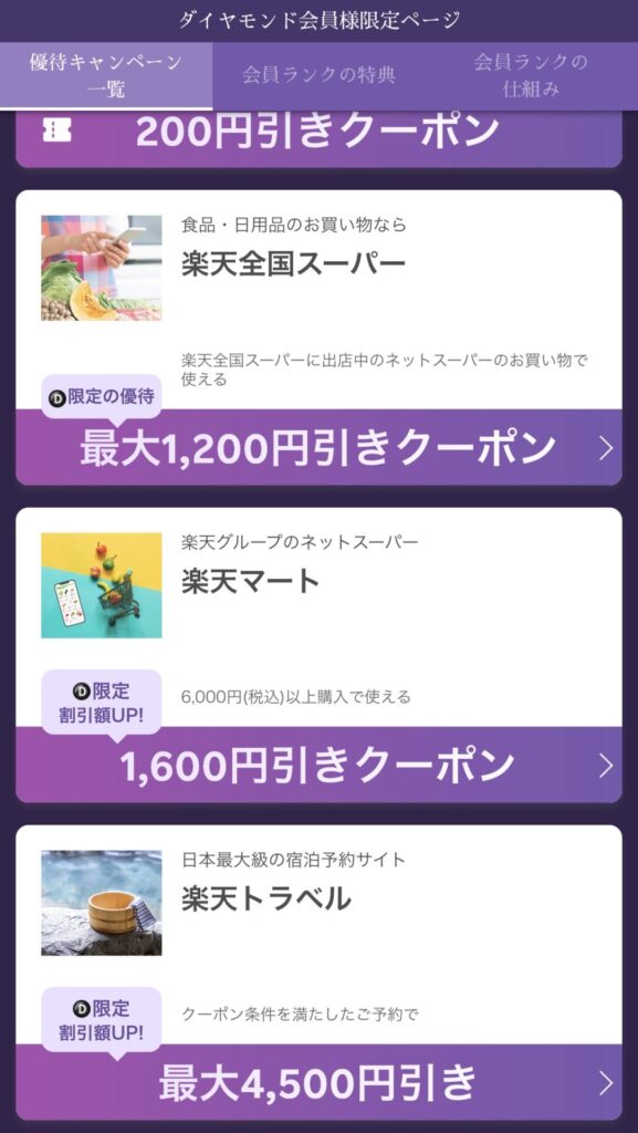 会員制度 : ダイヤモンドランク(楽天生活で達成)