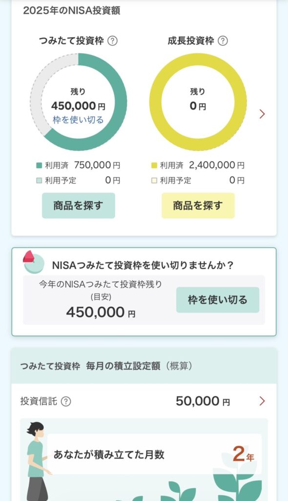 ・「つみたて投資」2年目突入となりました。(「成長投資枠」は、全部使用済みとなります。)