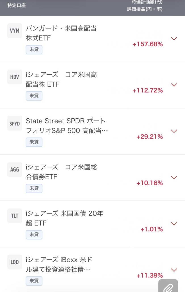 【特定口座】(利用開始:2012年 ~ )では、下記のETFを現在、保有しています。